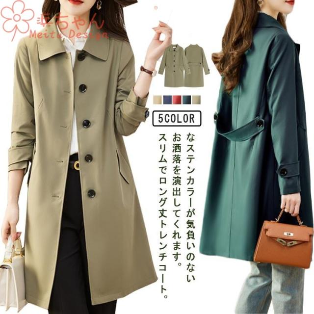 ステンカラーコート レディース トレンチコート ロング丈 春 秋 冬 ロングコート ビジネス コート 裏地付き 薄手 スリム きちんと 羽織り 大人
