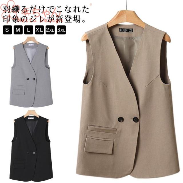 ジレ ノースリーブ ロングベスト テーラードベスト フォーマル スーツベスト ジレ 秋 ベスト 夏 テーラード シンプル ロング レディース 羽織り
