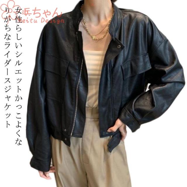 ライダース ライダースジャケット レディース PU レザージャケット ジャケット 秋 冬 ブルゾン アウター コート ノーカラージャケット エコレザー