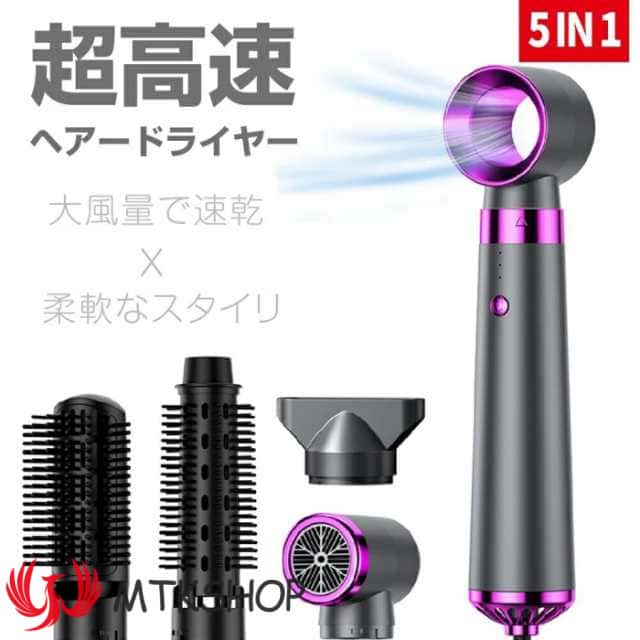 新作 5IN1 超高速 高風量 ドライヤー 大風量 イオンテク 3段階風量 速乾ドライヤー プラス・マイナスイオン 速乾 ストレートヘアドライヤー カールヘアケア アイロン マイナスイオン 低騒音 軽量 小型 冷風 温風
