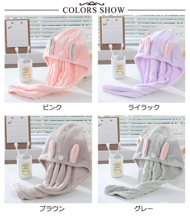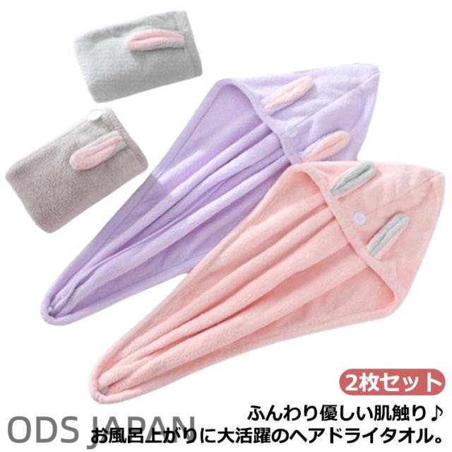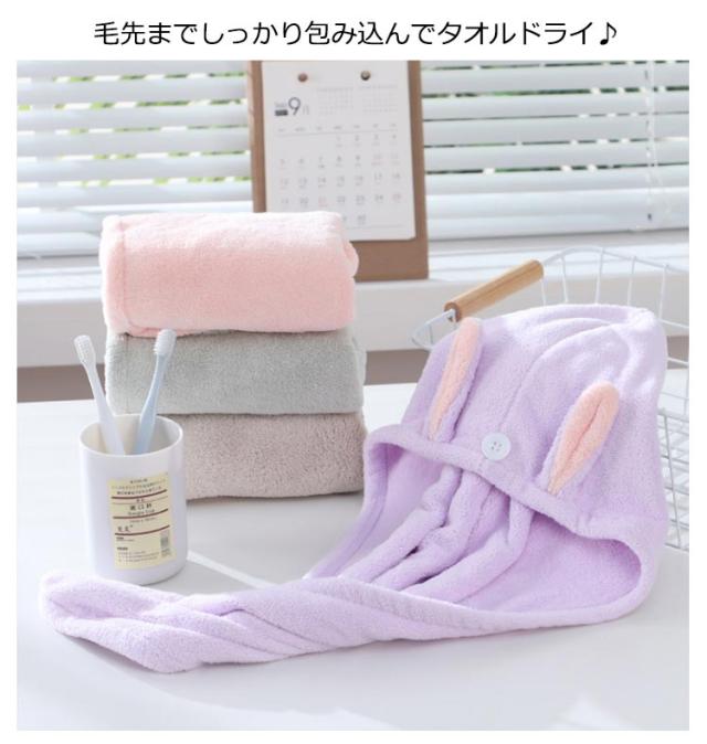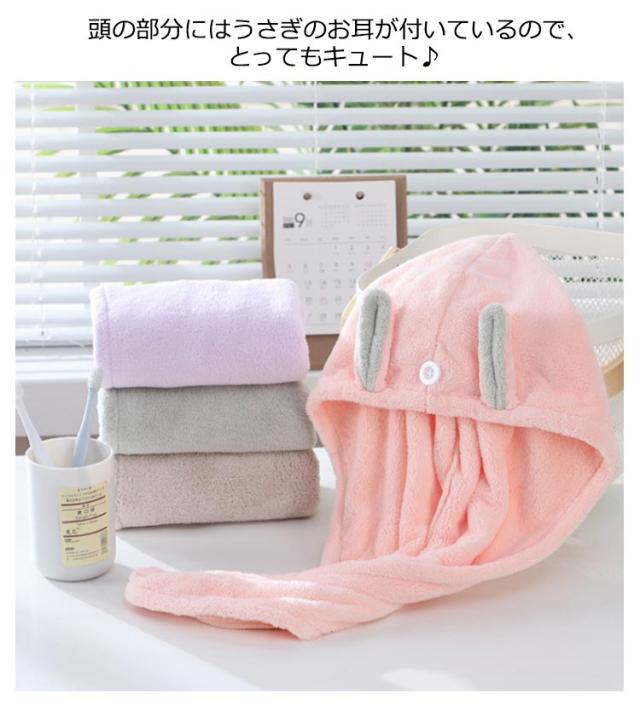 送料無料 2枚セット ヘアキャップ タオル ウサギ うさ耳 ヘアターバン キャップタオル ターバン タオル ヘアバンド お風呂上がり 大人 吸水 プール ヘアドライ レディース 女性 ロング ショート 洗顔 マイクロファイバー 速乾 かわいい