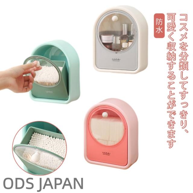 洗面所用 収納ボックス 収納ケース 透明 中身可視 綿棒収納 化粧綿収納 小物収納 雑物収納 化粧品収納 ヘアアクセサリー収納 壁掛け 粘着式 お片付け お洒落 玄関 トイレ 防水 防塵 3色 北欧 ファッション 可愛い プレゼント 送料無料