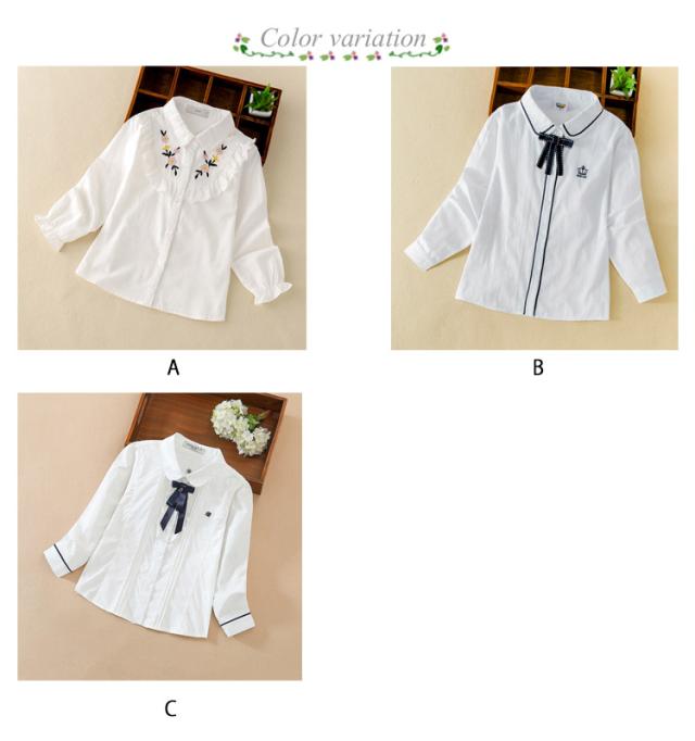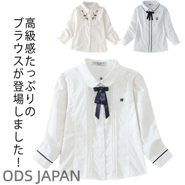 長袖 ブラウス 女の子 フォーマル フリル 刺? フラワー ブラウス シャツ フォーマルブラウス 長袖 リボン 白 コットン 入学式 卒業式 幼稚園 小学生制服 スクール スーツ キッズ ジュニア 110 120 130 140 150 160 送料無料