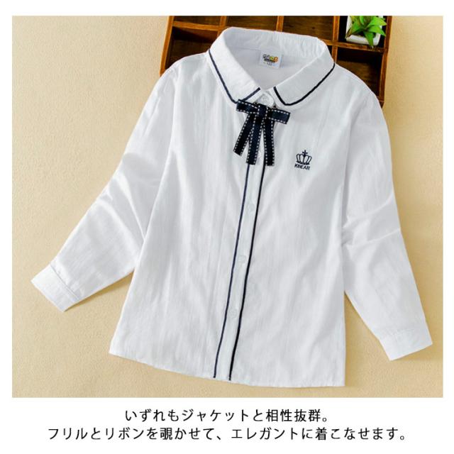 | 高級感たっぷりのブラウスが登場しました! コットン生地なので、乾燥肌・アトピー体質には嬉しいです。 いずれもジャケットと相性抜群。フリルとリボンを覗かせて、エレガントに着こなせます。 セーターやカーディガンなどと合わせて普段使いでも活躍しそうです。 入学式、卒業式、結婚式などのフォーマルシーンにふさわしい、キッズ?ジュニア用の長袖ブラウスです。 | |