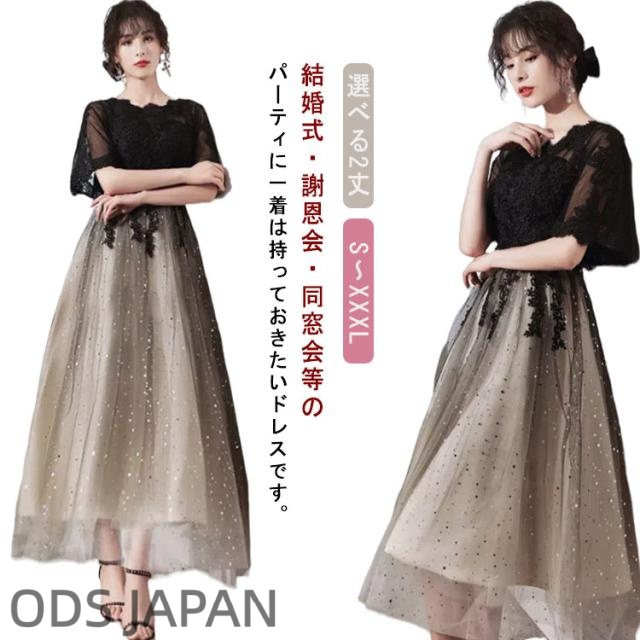 | 【選べる2丈】【S?XXXL】結婚式・謝恩会・同窓会等のパーティに一着は持っておきたいドレスです。 後ろが編み上げになっていて、サイズ自由に調節します。 スパンコールがキラキラと輝く、気品とゴージャス感に魅了させられます。 シースルーレース地に優雅な花柄レースを施されて、華やかさをより、一層引き立て、上品な印象と共に優美なイメージあります。 また、さらっとした生地なので着心地も抜群!長時間の着用でもストレスフリーです♪ 袖付きなのでボレロなしでも着れるのも嬉しいポイント◎ | |