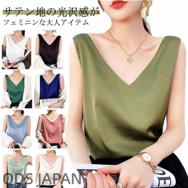 トップス 涼しい キャミソール ブラウス きれいめ レディース ノースリーブ Vネック インナー サテン 光沢感 サテン タンクトップ おしゃれ シルクタッチ サテン フォーマル オフィス 通勤 OL シンプル 20代 30代 40代 50代