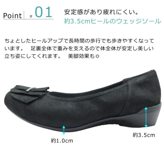 | コンポジションナイン composition9 2944 パンプス ウェッジヒール コンフォート 本革 レザー リボン 日本製 バレエシューズ |