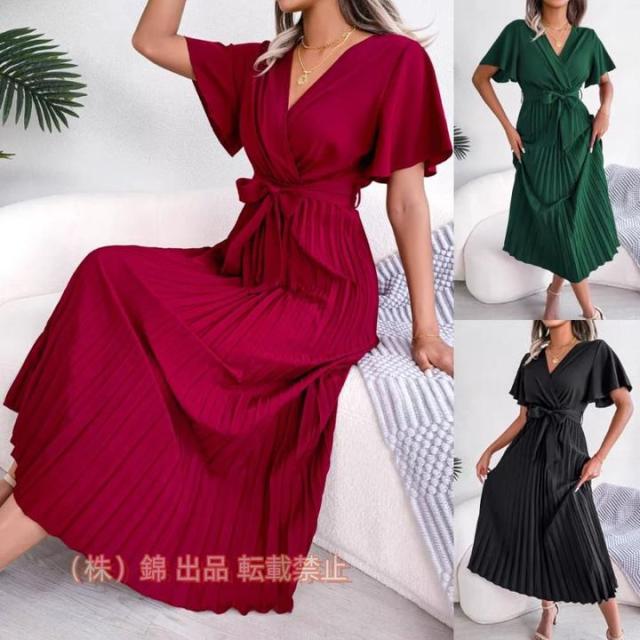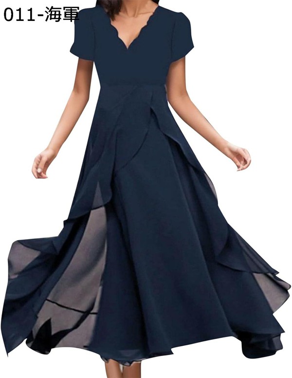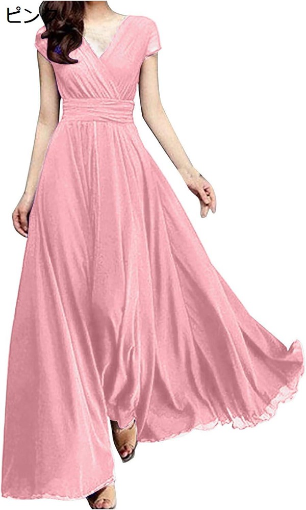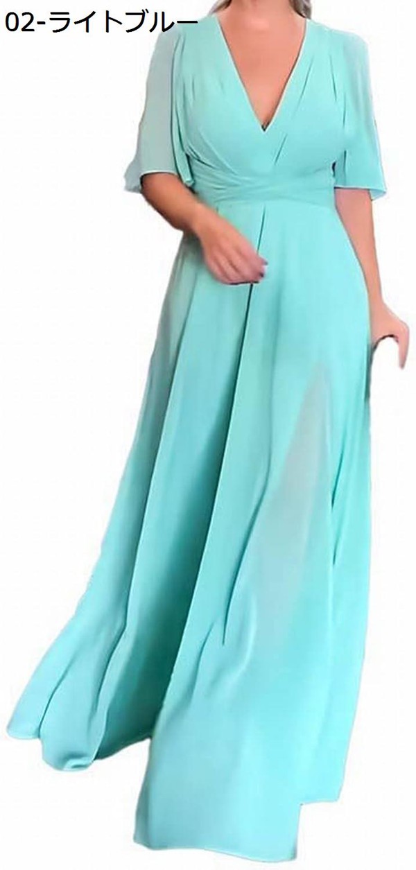 ワンピース レディース 夏 ロング マキシワンピース 結婚式 ドレス きれいめ vネック ロングドレス シフォン 株式会社錦パーティードレス 半袖