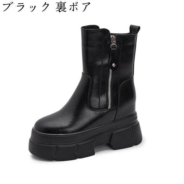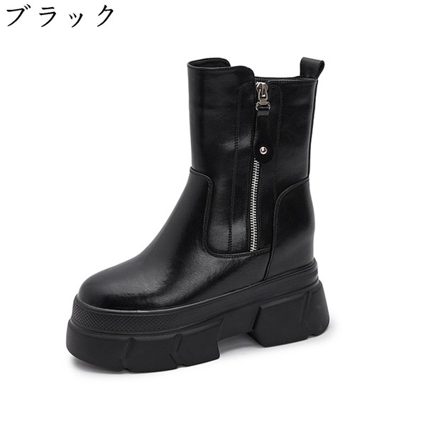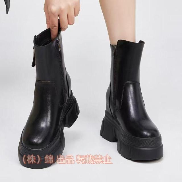 厚底 ショートブーツ レディース ヒール:10CMヒール 牛革 シークレットブーツ サイドジップ トラックブーツ株式会社錦 インヒール 秋冬 無地