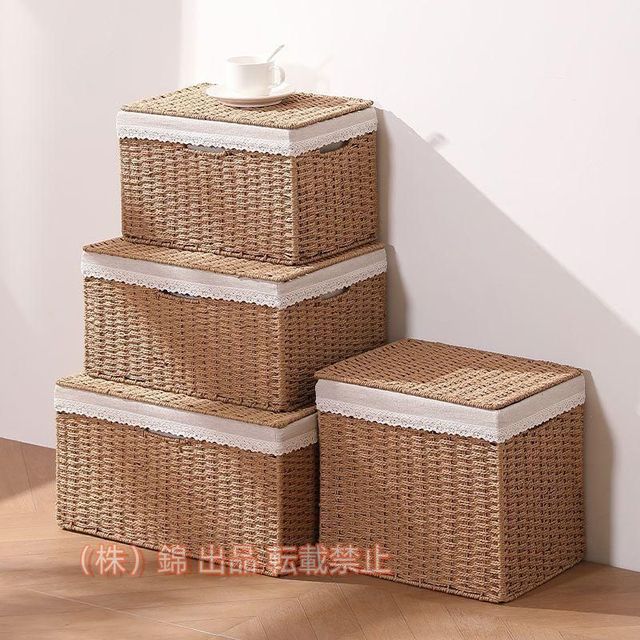 籐かごバスケット 収納ふた付きカゴ 収納ボックス 棚クローゼット かご かご 錦 収納ボックス フタ付き 収納バスケット 収納カゴ 籠 ふた付き ふたつき 蓋付き