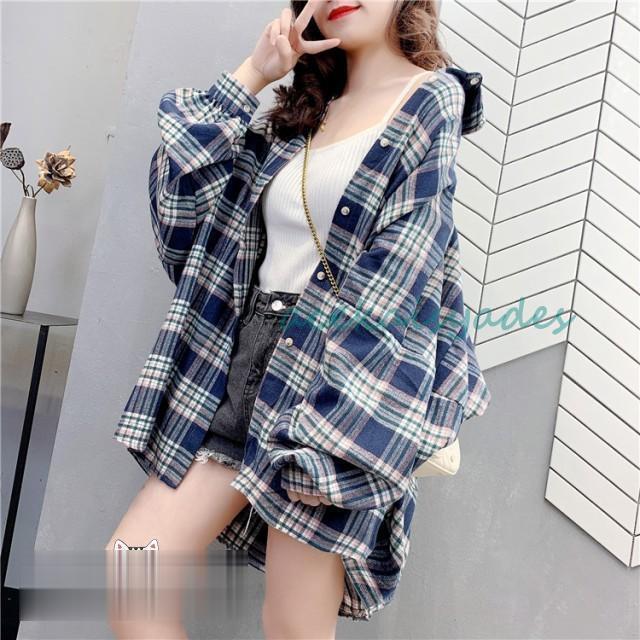 チェック柄 シャツ レディース ス 長袖 春 秋 冬 チェックシャツ レディース オーバーサイズ ビッグシルエット ゆったり 体型カバー ボリューム袖 ドルマンスリーブ カジュアル ロングシャツ 襟付きシャツ 羽織り おしゃれ 20代 30代 ブルー ブラウン グレー