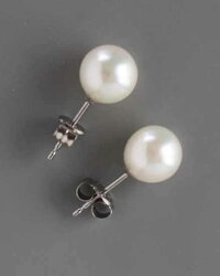 純チタン金具に国産あこや真珠8mm珠をセットした「オフタイム・ピアス」です。金属アレルギーの心配無用!着けたままでお休みになって、目覚めればピアスホールは清潔に!もちろん、他の宝飾ピアス同様に、ジュエリーとしてお使いいただけます。ピアスホールを清潔にしてくれる酸化被膜加工の金具にセットしました。■純チタンの表面に電気と薬品で「陽極酸化」をおこすことで、その表面には安定したガラス状の皮膜「陽極酸化皮膜(TiO2)」がつくられます。この酸化皮膜には特殊な効果が3つあります。[1]紫外線(太陽光・蛍光灯)を受けるとそのエネルギーを触媒(反応を起こさせる要因)として周辺にある水分を分解、抗菌力を持つ酸素などを発生させます。[2]酸化皮膜は非常に安定しているため、皮膚に接触してもイオン化がおきません。そのため他の金属のように金属アレルギーを起こしません。[3]純チタンの表面に発生する酸化チタンは六角形の透明な柱状をしています。この結晶は、可視光線をプリズムのように反射します。そのため、皮膜の厚さをオングストローム単位で調整することで美しい発色が得られます。