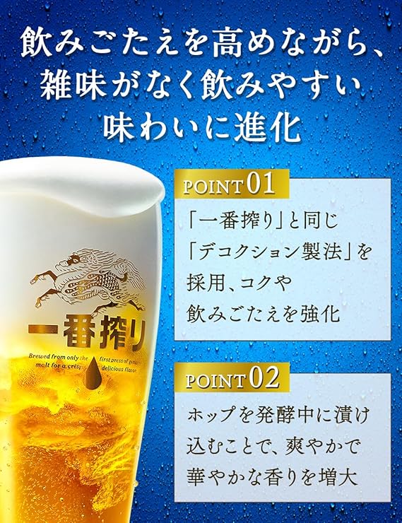 ビールで糖質をゼロにする「糖質カット製法」と一番搾り麦汁だけを贅沢に使用して作る「一番搾り製法」によって、”おいしいビールで糖質ゼロ”を実現しました。