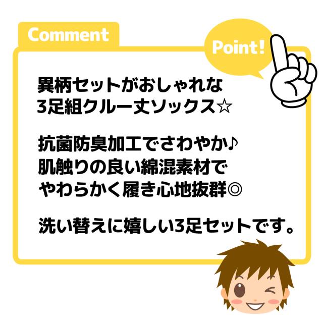 異柄セットがおしゃれな3足組クル