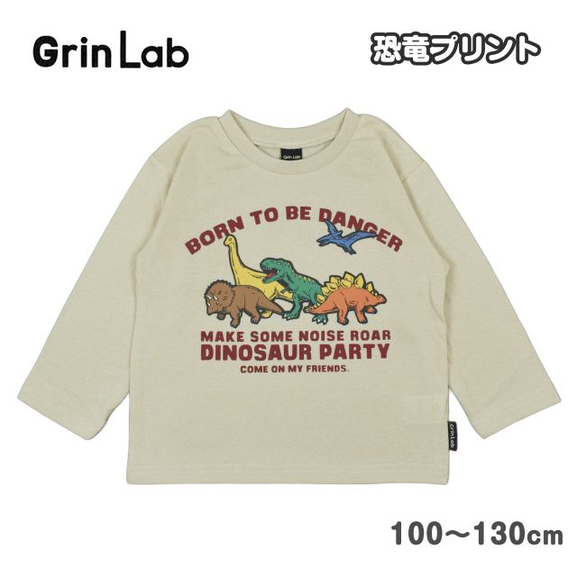 Grin Lab グリンラボ 恐竜プリント 長袖Tシャツ 。