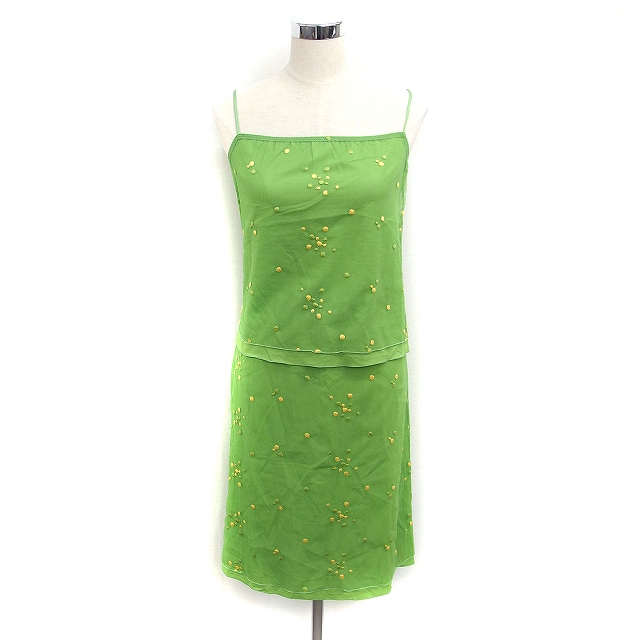 【中古】シビラ SYBILLA セットアップ キャミソール フレアスカート チュール 刺繍 M グリーン 緑 /FT2 レディース
