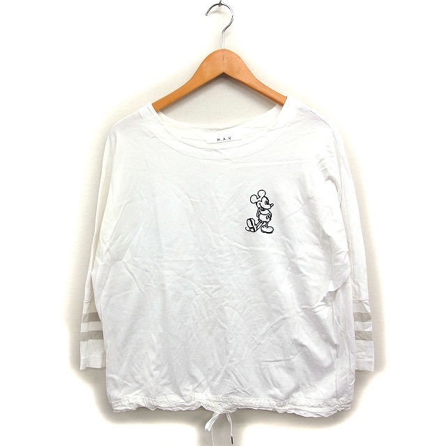 【中古】ハク スーパーハッカ H.A.K × ディズニー Disney ミッキー刺繍 Tシャツ カットソー 7分袖 ドロスト コットン