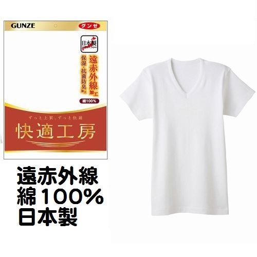 日本製 遠赤外線加工 半袖 V首 シャツ 快適工房 メンズ インナー 紳士 肌着 下着 綿100% 秋冬素材 グンゼ KQ6015