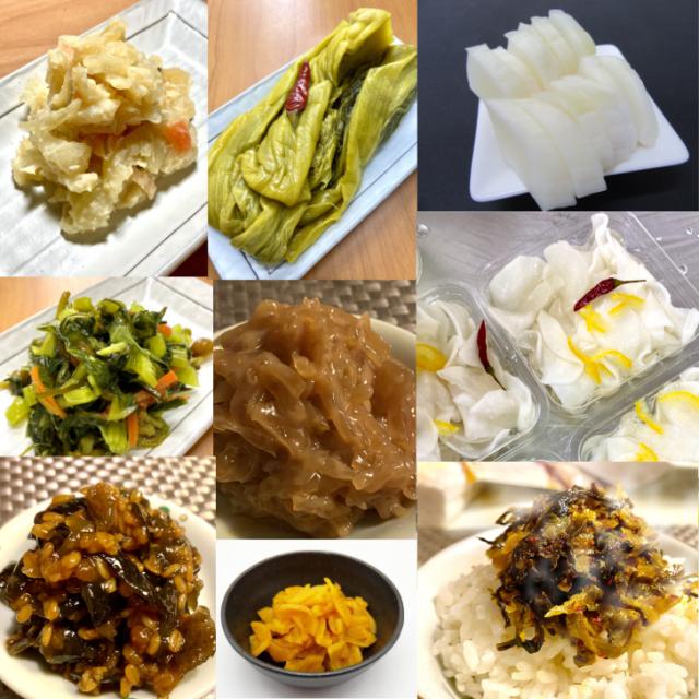| 内容量 | 切れてる奈良漬→130g つぼ漬→110g もろみなす→150g 野菜の粕漬け→150g ゆず大根→140g 野沢菜なめこ昆布→150g べったら漬け→ハーフ1本 古高菜漬け→200g 辛子高菜→125g 辛子明太高菜→115g |