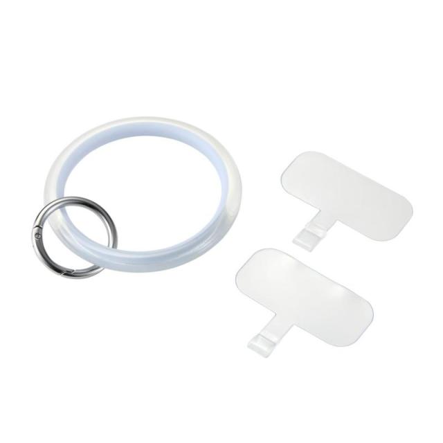 きらめくクリア感が特徴で、手首に通して使えるリングタイプのスマホハンドストラップです。