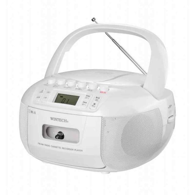 WINTECH【CDラジカセ】CDR-YS1 ホワイト シンプル&コンパクト AM/FM(ワイドFM対応)デジタルチューニング 外部入力端子 本体内蔵マイク 電源ケーブル付属 単二乾電池×6本(別売)