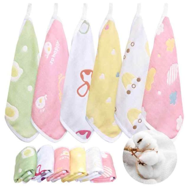 ガーゼハンカチ 赤ちゃん ベビー タオル ループタオル 子供用 綿100% 6層ガーゼ 柔らかい 口拭きタオル (ピンク,イエロー,ホワイト,グリーン)