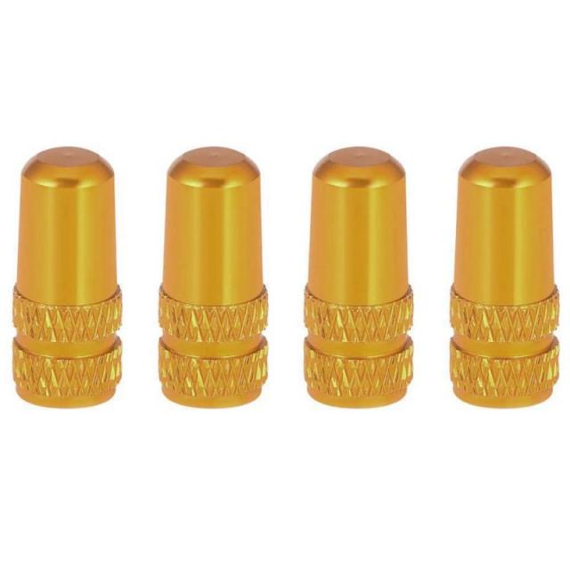 YFFSFDC 自転車 仏式 バルブキャップ 4個セット アルミ合金製 タイヤ アルミバルブキャップ フレンチバルブ ロードバイク ドレスアップ 仏式バルブ用 (ゴールド)