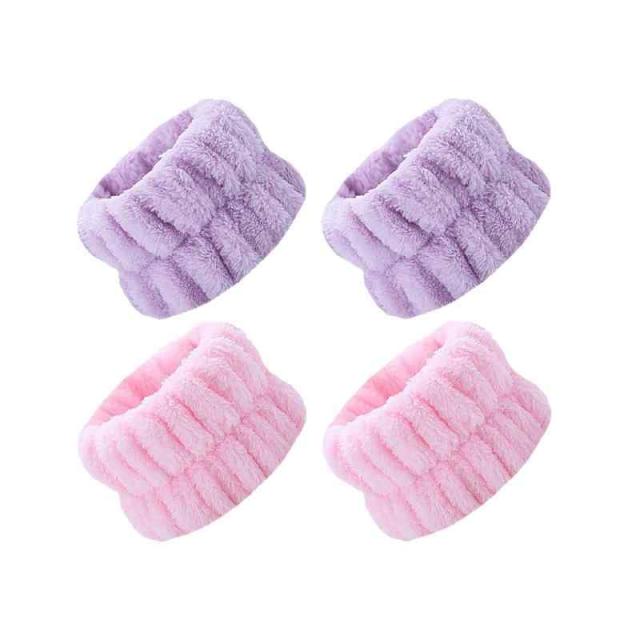 Anboli 手首 タオル リストバンド ふわふわ ウォッシュバンド おしゃれ 手首 バンド 洗顔用 タオルリスト 伸縮性 2ペア入り 吸水性 速乾 柔らかい かわいい 袖濡れ防止 防水 汗対策用 汗止めバンド 吸水 多機能 子供 家事 男女兼用 (パープ