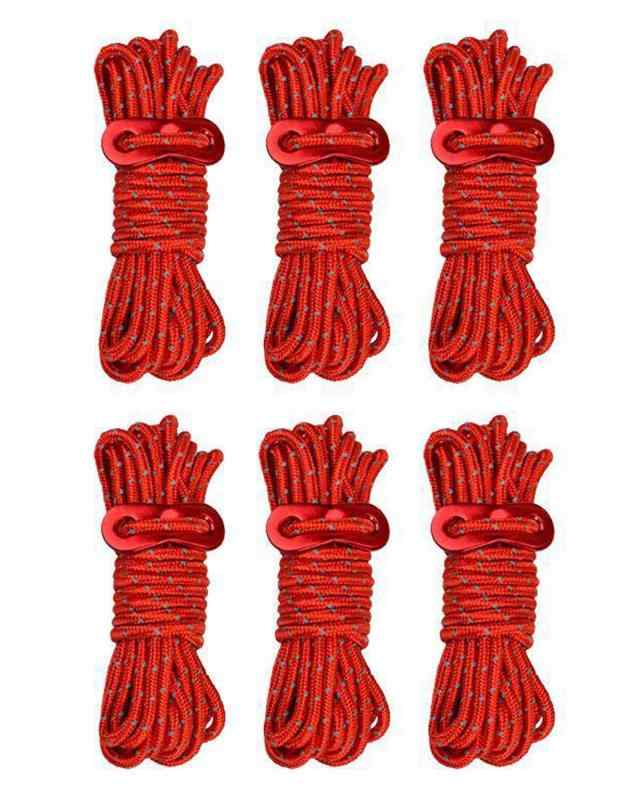 LIKENNY テントロープ 4mm * 4m 耐荷重200KG ガイロープ パラコード ロープ ガイライン タープロープ 反射材 自在金具付き キャンプ アウトドア 物干しざお 【6本セット】レッド