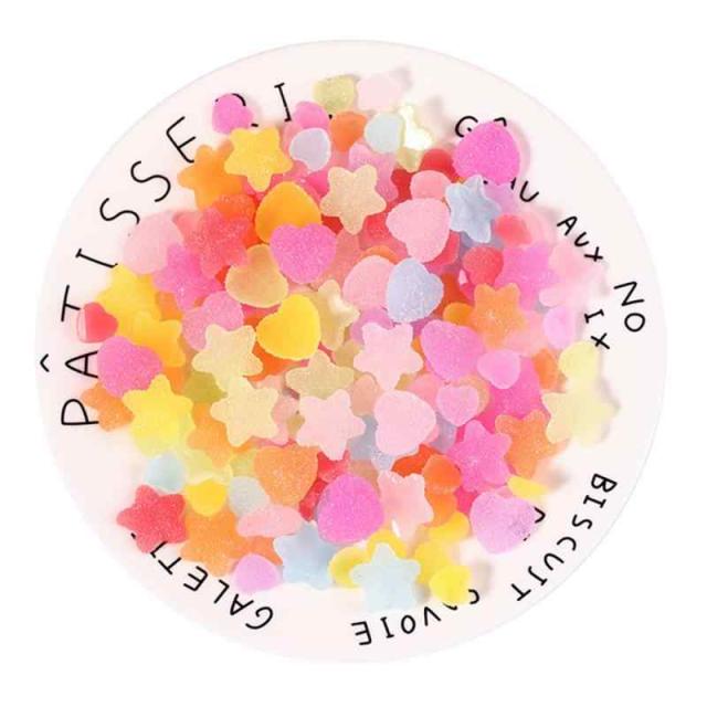 【セット内容】2種類のハートと星デコパーツがあり、サイズは11mm/16mm、各サイズ50個 、合計約100個。