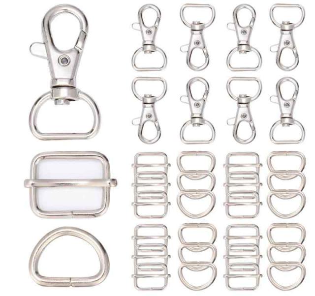 ナスカン 7個 Dカン 14個 リュックカン レバーナスカン 移動カン 14個 レザー 金具 ハンドメイド パーツ バックル (内径15mm, シルバー)
