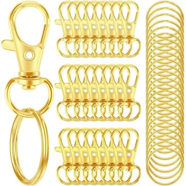 キーホルダー 金具 キーホルダーパーツ 50個入り 全長4.7CM ナスカン レジン パーツ キーホルダーパーツ 回転フック 丸カン 付き ハンドメイド キーリング アクセサリー DIY 手芸用品 (ゴールド2)