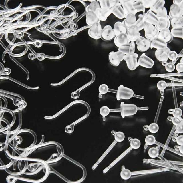 ピアス パーツ 樹脂 フック 丸玉 カン付き ポスト シリコンキャッチ付き 金属アレルギー対応 クリア 2種100個 セット