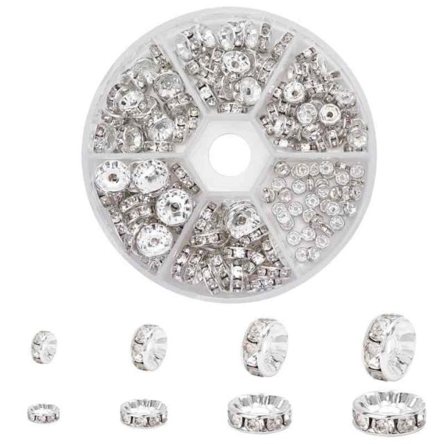 PH PandaHall 約160個/箱 4/6/8/10mm 真鍮 平ロンデル グレードAAA クリスタル ラインストーン メタルビーズ スペーサービーズ ジュエリー製作 ネックレス・ブレスレット・イヤリング・ピアスなど アクセサリーパーツ DIY用 手芸材料 手作り素材 材料 混合色 (シルバー 160個)