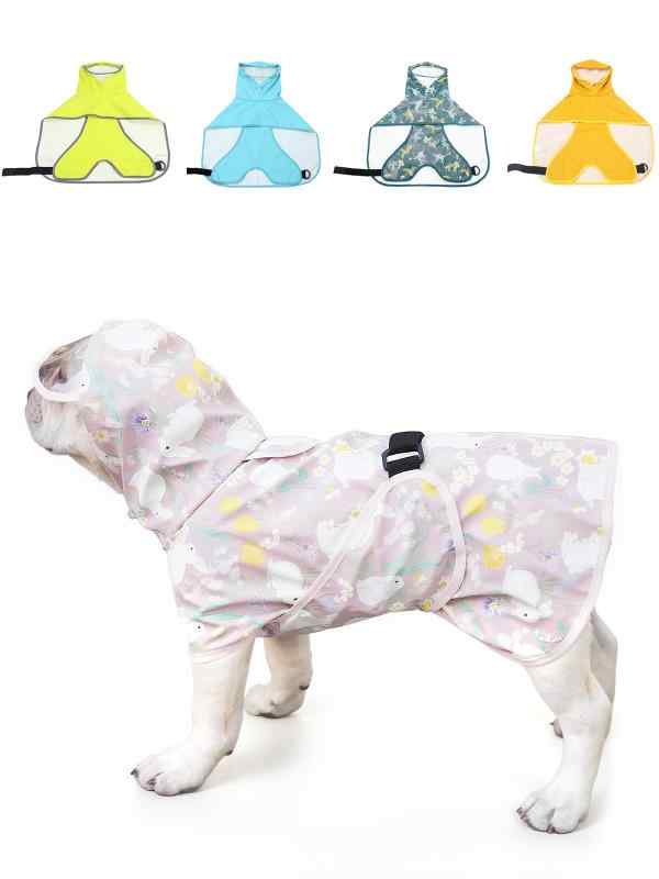 【撥水・防水・防風・通気】犬レインコート表に撥水加工、3重塗装のPU生地により、防雨・防風性能が抜群縫い目にもホットプレス防水加工、しっかり雨の侵入を防げ、雪除けとしても活躍してくれます犬の視界を妨げないよう、フードに大面積の透明PVCを装備、ツバは鼻先まで覆えるほど長く作られているため、顔もカバーされます。