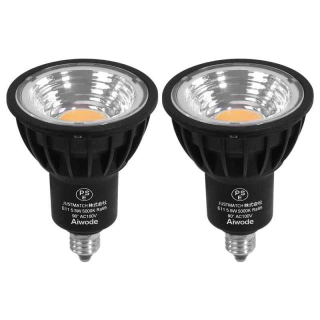 Aiwdoe E11 LED電球 60W形相当LEDスポットライト、LEDハロゲン電球、CRI95 明るさ550lm 広角90°交流100V キッチン、使用するアウトドア、オフィス、レストラン (昼白色5000K - ブラック(2個セット), 1)E11)