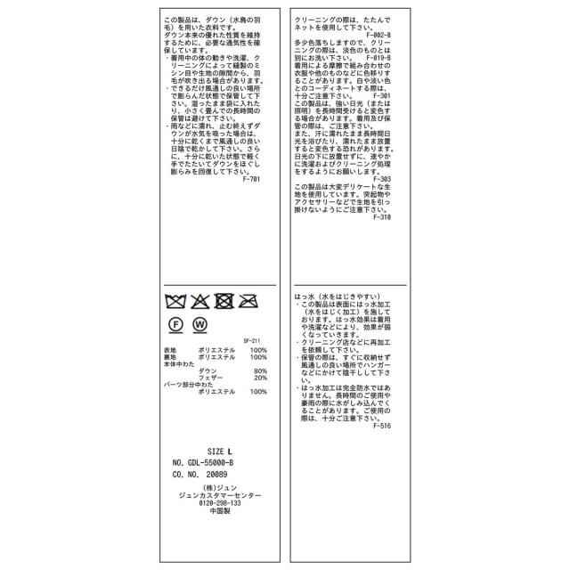 ■素材:(表地) ポリエステル 100% (裏地) ポリエステル 100% (本体中わた) ダウン 80% フェザー 20% (パーツ部分中わた) ポリエステル 100%