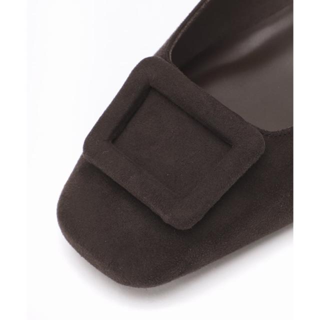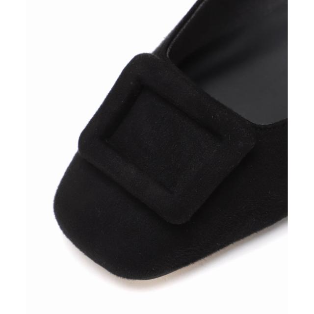 スクエアトウにスクエア型バックルの組み合わせがレトロな印象のパンプス。