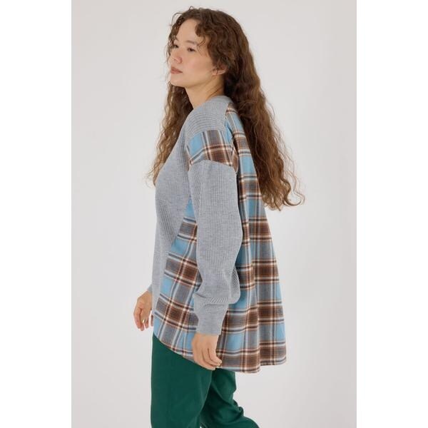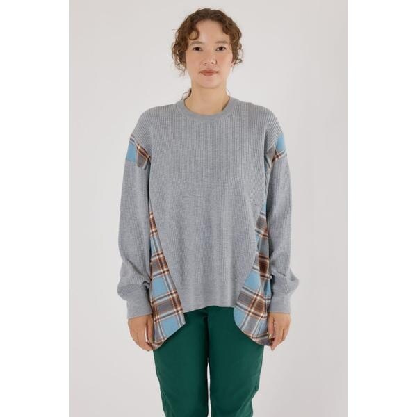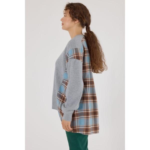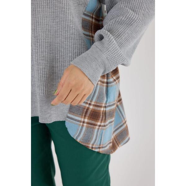 ■ポイントニット×チェックシャツのドッキングで、着るだけで着映えする1着。■ディテール表面感のあるワッフル編みのニットと、チェックシャツのドッキング。大きく前後差をつけることで前から見るとすっきりシルエット、後ろはヒップを隠す着丈でバランスも取りやすいデザインです。■スタイリングデニムやミリタリー素材など、アメカジ素材との相性抜群です。■生地ニット編地はポリウレタンを引き揃えて編んでおり伸縮性が良くなっています。チェック生地は打ち込みを甘くすることで柔らかい風合いに仕上げています。ローゲージニットパーツを使用しているのでハンガー掛けをするとサイズブレの原因になります。■透け感:あり■裏 地:あり■伸縮性:あり■光沢感:あり[注意事項]※画像の商品はサンプルです。実際の商品と仕様、加工が若干異なる場合があります。※画像の商品は光の照射や角度、お使いのモニター環境により、実物と色味が異なる場合がございます。※着用、お取り扱いの際は、アテンションタグをご確認ください。