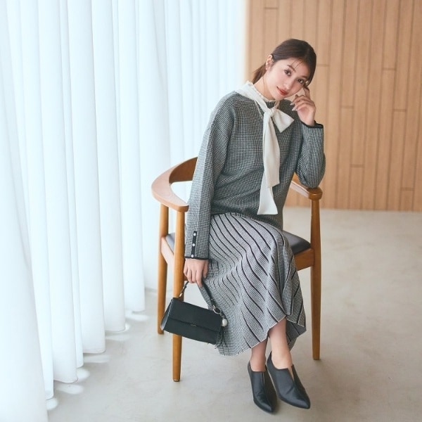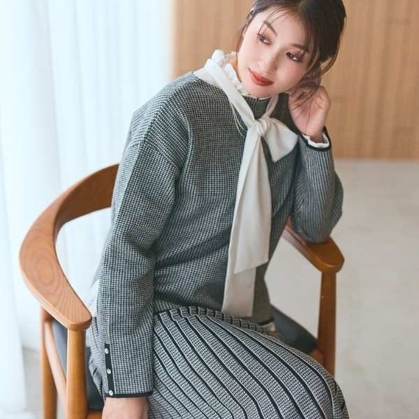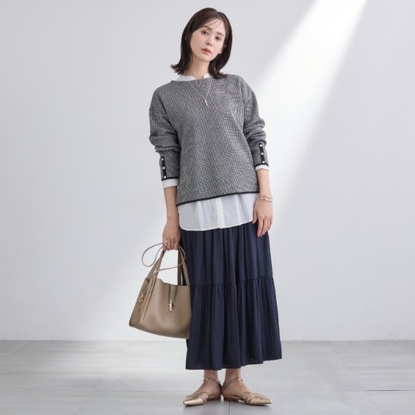 ワイドパンツやきれいめパンツと好相性で、同素材のスカートと合わせたセットアップ風スタイリングもおすすめです。