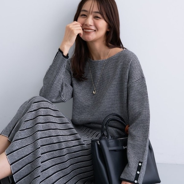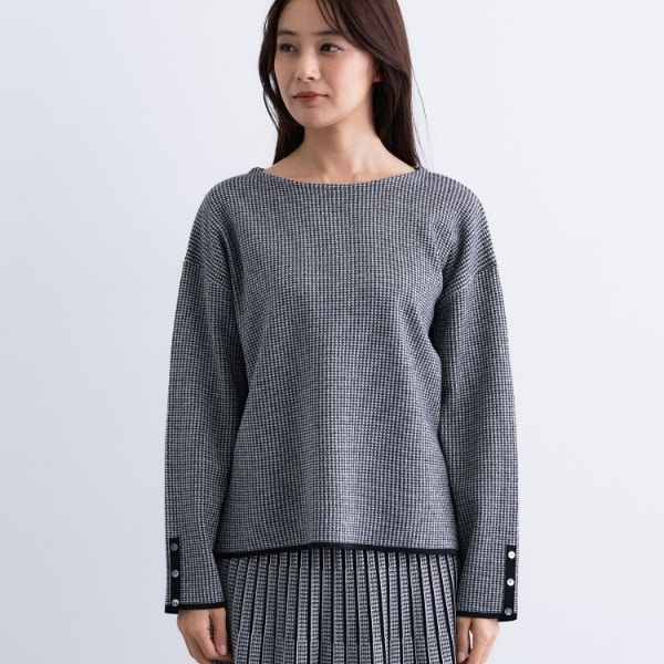 インディヴィ(INDIVI)/【洗える/SETUP可能】ジャカードボートネックニット