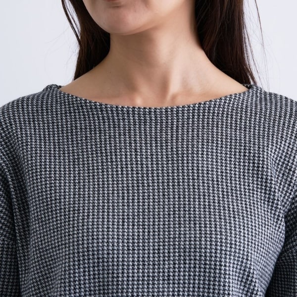 良質なダブルジャカード編みで仕立てた、目面の美しいボートネックニット。