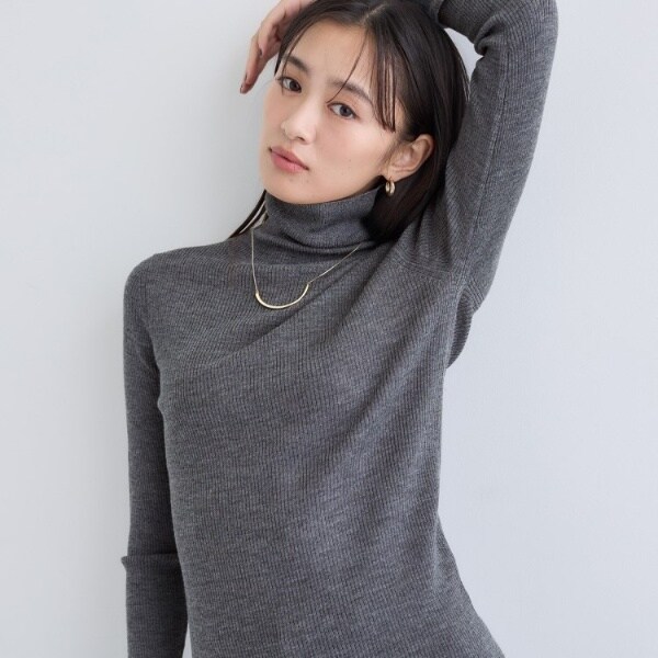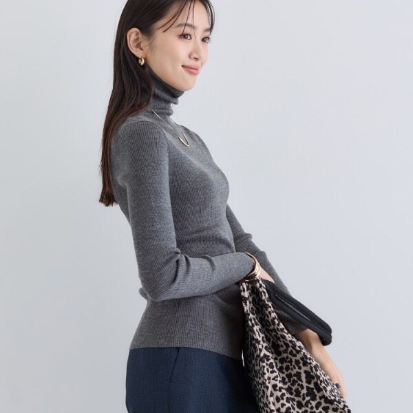 良質なウールを18ゲージのハイゲージ編みで仕立てたリブタートルニット。