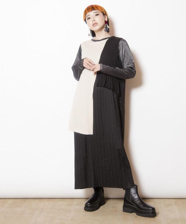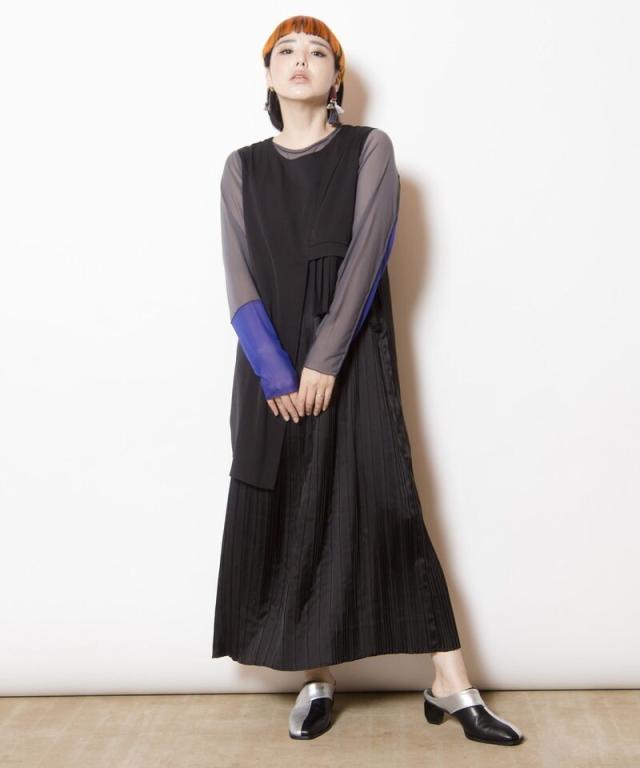 2WAYレイヤードプリーツワンピース