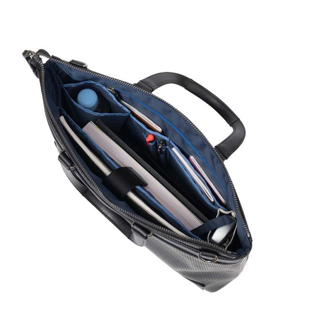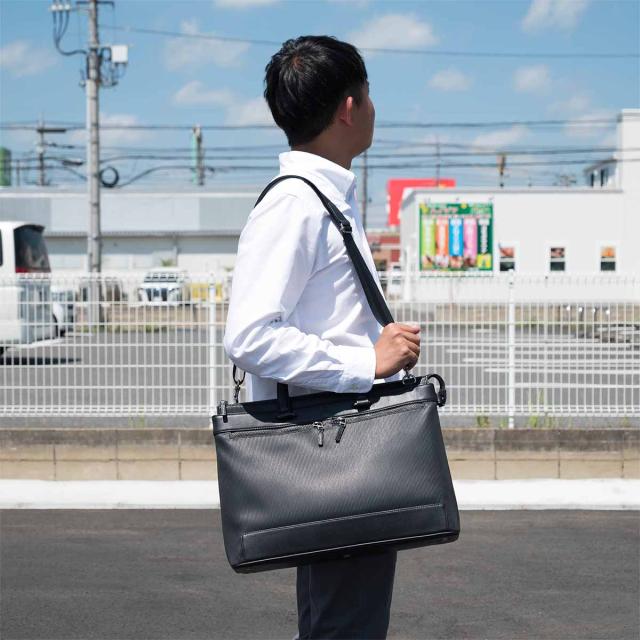 B4サイズまで対応した大容量のサイズ感。ノートPCや書類、小物を効率よく収納できます。