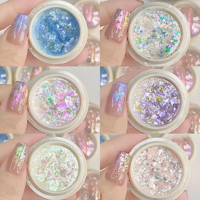 【ネイルグリッター】綺麗なネイルパウダーです。カラーのバリエーションが豊富で、オーロラ感があっておしゃれです。優しい色合いで上品な印象に仕上がります。 【素材】ネイルホログラムは品質いいPETプラスチック素材で作られております。無毒無害で、肌に優しいです。 【使いやすい】薄型なネイルホロなのでとても使いやすい。ジェルに埋め込んで、ネイルをより一層華やかにしてくれます。自宅でも様々なネイルアートを楽しめます。 【幅広い用途】平素のネイルにもパーティーネイルにも使えます。ネイルだけではなく、メイク、ヘア飾り、レジン封入、ラメアート、デコパーツなど幅広くお使いいただけます。 【パッケージ】ラメグリッター6個セット。