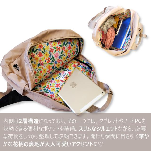 機能性とデザイン性を兼ね備えた、幅広い世代の女性におすすめのリュックです。
