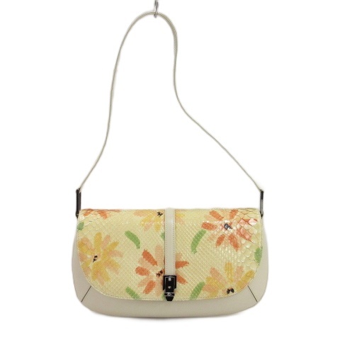 【中古】ジョルジオジー Giorgio G ワンショルダー バッグ パイソン レザー 花柄 黄色系 クリーム系 レディース