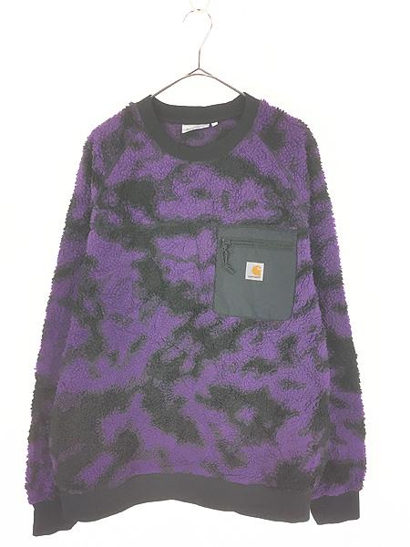 古着 Carhartt ナイロン ポケット タイダイ風 プルオーバー パイル ボア フリース ジャケット L