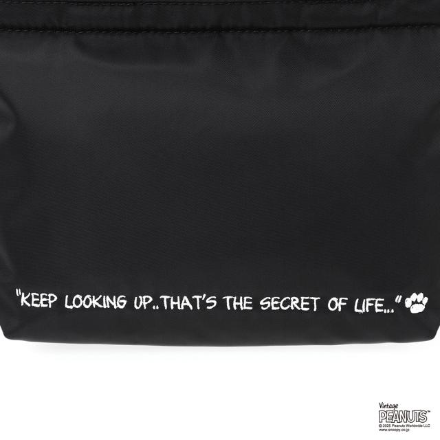 | 多くの人々を魅了し続ける「PEANUTS」とのコラボレーションコレクションが今年も登場。 今作ではチャーリー・ブラウンとスヌーピーの2ショットを全デザインに採用し、バッグの外側と内側でストーリーが展開される、これまでにないクリエイティブな仕上がりとなっています。 メインアートとブランドロゴの間には、チャーリー・ブラウンを象徴する「ジグザグ模様」をさりげなく配置。さらに、ボディの一部にコミック内のセリフを配し、その横にスヌーピーの足跡モチーフを添えた遊び心あるデザインもポイントです。 カジュアルながら大人っぽさも感じられる、エッジの効いた大注目のコレクションです。 ・チャーリー・ブラウンとスヌーピーの2ショットを採用 ・バッグの外側と内側でストーリーが展開される、これまでにないデザイン ・外側のデザインを刺繍、内側のデザインをプリントで表現 ・メッセージと一緒に添えたスヌーピーの足跡モチーフを刺繍で表現したワンポイントデザイン ・なめらかで高級感のあるナイロンツイル素材を採用 ・メイン収納口はジッパー開閉 ・貴重品などの収納に適した内ポケット付き ・取り外し可能なショルダーストラップ付き ・500mlペットボトル収納可能 ・ショルダーストラップには、肌や衣類に優しいナイロンウェービングテープを採用 ・ショルダーストラップ:約80cm-143cm ・ショルダーストラップ幅:約2.5cm ・ハンドル長さ:22cm ・表側ポケット:0 ・内側ポケット:1 |
